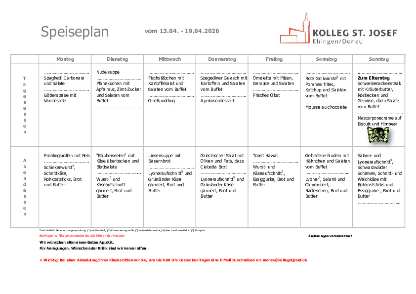 "Mensa-Ummeldeformulare" für Schülerinnen und Schüler