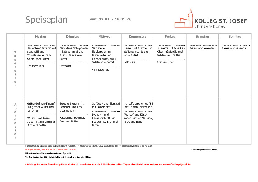 Mensa / Speiseplan