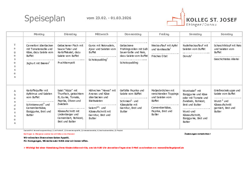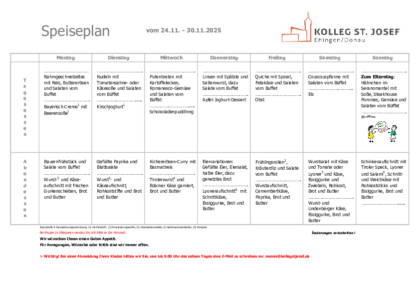 Überzeugen Sie sich selbst von den ausgewogenen Mahlzeiten im unten stehenden Speiseplan der Woche.